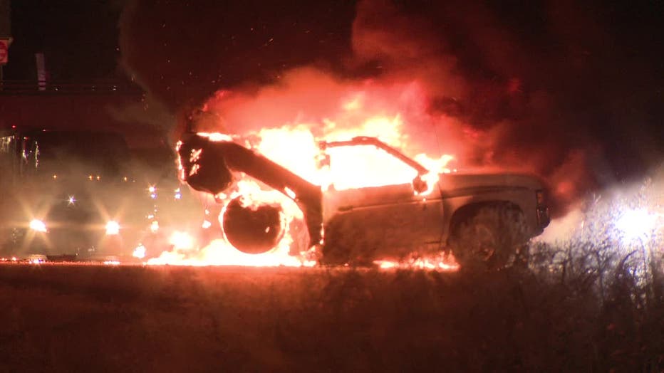 1 Killed When Truck Leaves Dallas Highway Hits Fence Tree And Catches Fire Nbc 5 Dallas Fort Worth